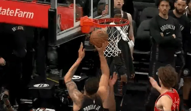 比赛第四节,小波特顶着科比-怀特完成强硬上篮,篮网完成5.4秒准绝杀。